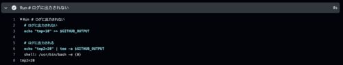 はじめに 今回はGITHUB_OUTPUTに書き込む際に>>ではなく| tee -aを用いることでログに書き出せることについて書きたいと思います。めっちゃ小ネタです。 はじめに 概要 説明 概要 タイトルにもある通り、GitHub ActionsでGITHUB_OUTPUTに書き込む際に| tee -…